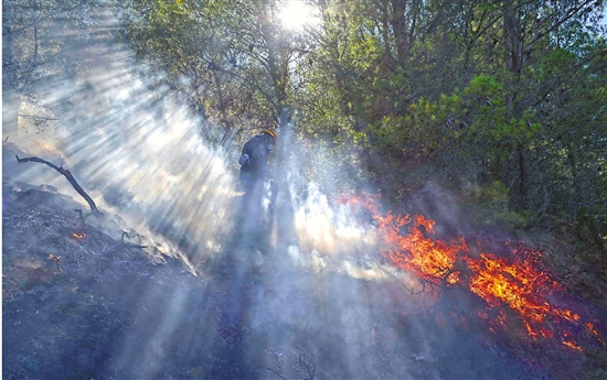 6月30日,一名消防员在希腊凯拉泰阿进行灭火作业。希腊目前处于形势严峻的野火季。据希腊消防部门统计,6月29日黎明以来,希腊各地至少发生40场野火。 新华社发