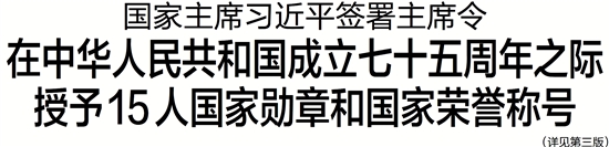 在中华人民共和国成立七十五周年之际授予15人国家勋章和国家荣誉称号