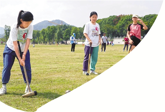 木球在上虞已发展为深受百姓喜爱的全龄段运动。图为2024年上虞区中小学生木球比赛。通讯员 朱胜钧 摄