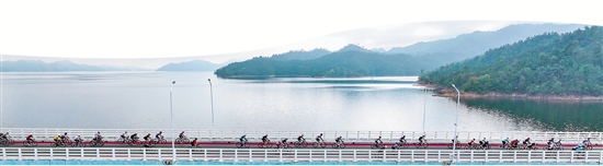 2024中国自行车运动骑游大会暨第十八届中国环千岛湖公路自行车赛在淳安千岛湖开赛。 拍友 余剑锋 摄