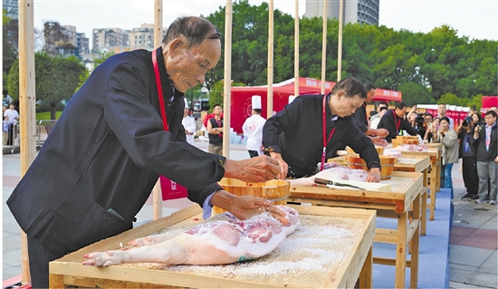 手艺人展示传统火腿腌制技艺 时补法 摄