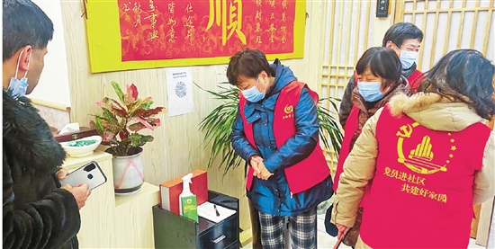 老干部参与辖区商铺消防安全志愿服务。 顾人杰 摄