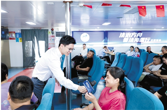 舟山市开展“法治方舟”海上普法行动 (图片由舟山市司法局提供)