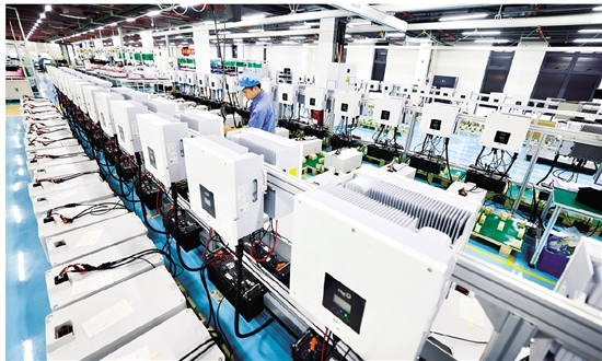 麦田能源股份有限公司车间内,工人操作智能设备赶制订单。 苏巧将 摄