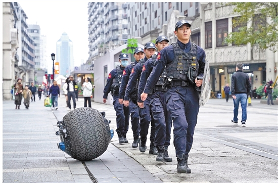 鹿城特警与“大黑球”一起巡逻