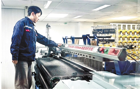 浙江省现代纺织技术创新中心(鉴湖实验室)内,实验人员正在操作高速剑杆织机。 王紫微 摄