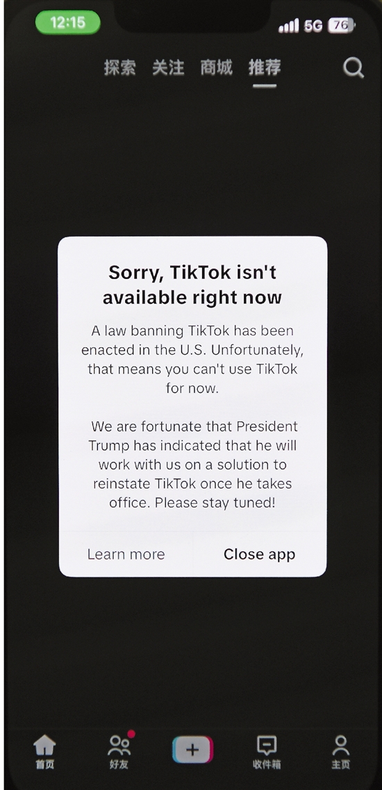 TikTok停止在美服务