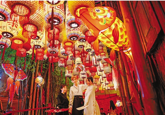 1月18日,在马来西亚吉隆坡举行的迎新春活动上,人们在鱼灯艺术装置前拍照