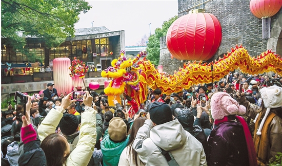 杭州南宋御街,舞龙、迎财神等丰富多彩的新春年俗活动吸引了众多市民和游客。
