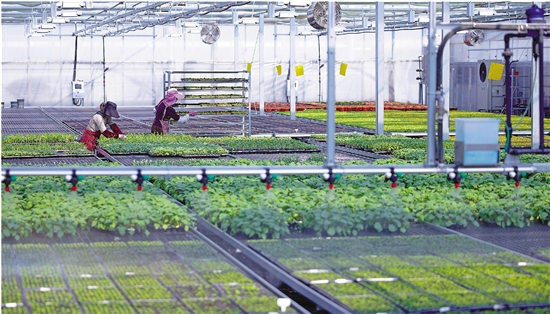 | 2月18日,杭州市萧山区浦阳镇的“谢径安”传化农创村智能播种车间内,正在开展工作。数字种苗工厂可实现精准控温、高效工作,保障了种苗的正常稳定供应,并带动了当地(谢家、径游、安山三村)村民的增收和就业。 本报记者 倪雁强 通讯员 蔡卡特 摄 |