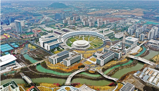 近日,位于杭州的西湖大学云谷校区云谷水环贯通。云谷水环系统全长2483米,将校园空间划分为中心学术科研岛和生活服务配套两大区域,提升了校园及周边环境品质。图为2月21日,无人机鸟瞰杭州西湖大学云谷校区。 本报记者 林云龙 摄