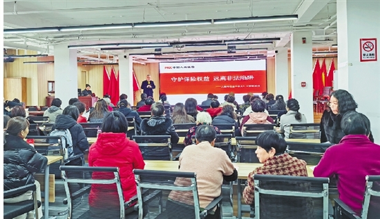 金华人保寿险分管负责人宣传远离非法集资陷阱讲座现场