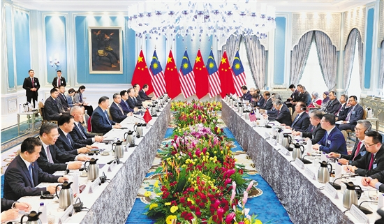 4月16日下午,国家主席习近平同马来西亚总理安瓦尔在布特拉加亚总理官邸举行会谈。 新华社记者 丁林 摄
