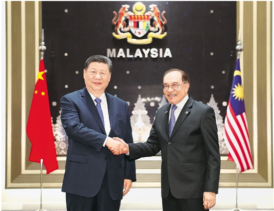 4月16日下午,国家主席习近平同马来西亚总理安瓦尔在布特拉加亚总理官邸举行会谈。