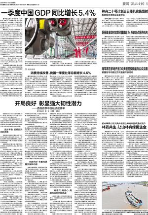 一季度中国GDP同比增长5.4%