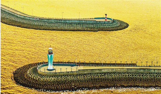 亚帆灯塔在落日余晖映衬下,构成一幅绝美画卷。