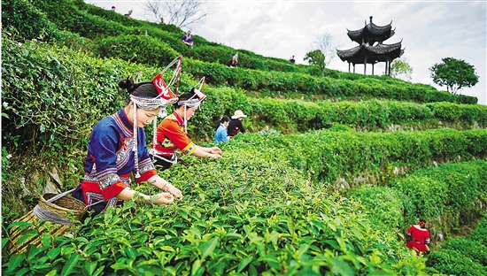 村民在采摘惠明茶春茶。 景宁县融媒体中心供图