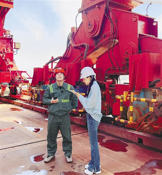 本报记者(右)跟着陈力在码头巡检。 通讯员 李跃明 摄