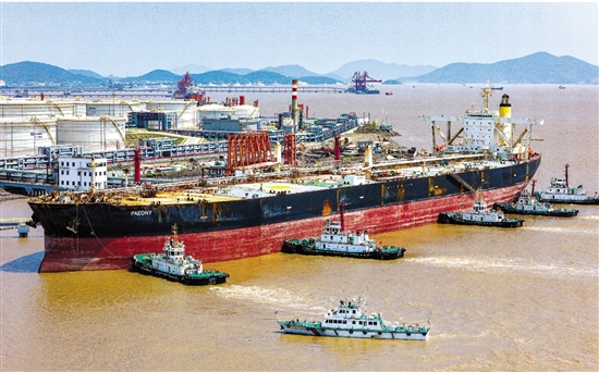 4月30日,超大型油轮“牡丹”轮平稳靠泊深圳港舟山能源基地光汇油品码头,在这里卸载16.6万吨燃料油。这是该码头实现对外启用后的首次卸油作业,标志着浙江自贸试验区发展油品大宗贸易再添新通道。 深圳港舟山能源基地是深圳港集团在舟山投资建设的能源项目,是浙江自贸试验区舟山片区油气全产业链发展的重要组成部分,致力于打造国内最大、功能最全的油品全产业链物流仓储基地。 本报记者 拜喆喆 通讯员 聂馨梦 周宇超 文/摄 |
