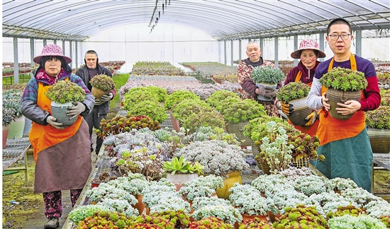 景宁县东坑镇深垟村多肉基地工作人员展示多肉植物。 景宁融媒体中心供图
