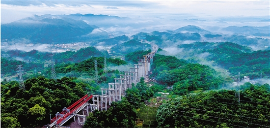 连日来,在104国道新昌段改建工程施工现场,建设者正在抓紧赶工期,在云雾缭绕的群山中修路。目前,该项目已累计完成投资23.6亿元,总体建设进度突破65%。该工程二期项目北起新昌南明街道荘前村,南至天台交界关岭隧道洞口,总投资额达41.36亿元,建成后,将极大改善新昌至天台的行车条件。 拍友 周桂华 俞晓委 摄