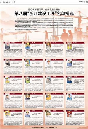 第八届“浙江建设工匠”名单揭晓