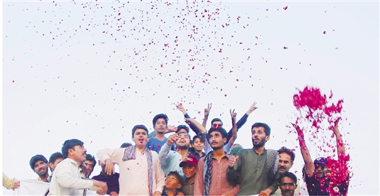 5月10日,在巴基斯坦东部旁遮普省木尔坦市,人们在巴基斯坦和印度宣布停火后庆祝。 新华社发