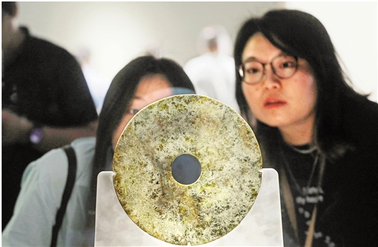 玉架山遗址发掘出土的刻符玉璧。