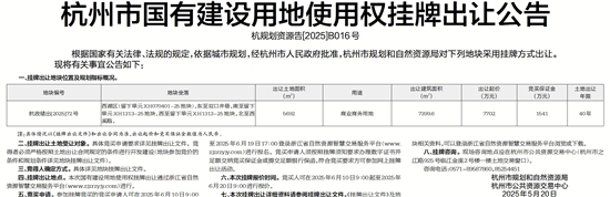 杭州市国有建设用地使用权挂牌出让公告