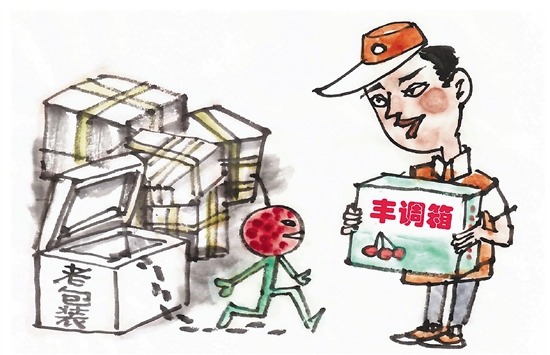 新修订的《快递暂行条例》对快递包装进行了全面、系统的规定。当前,快递企业对绿色包装的探索初见成效。例如,海南某快递网点荔枝寄递有了“新装”——丰调箱。它与常规纸箱的最大区别就是箱体上多了4个白色气阀,能自动调节箱内气体浓度,延长水果保鲜时间,而且更轻。这不仅降低了发运成本,也提高了打包效率。 王成喜 作 |