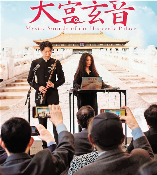 音乐人在故宫文创展上表演。