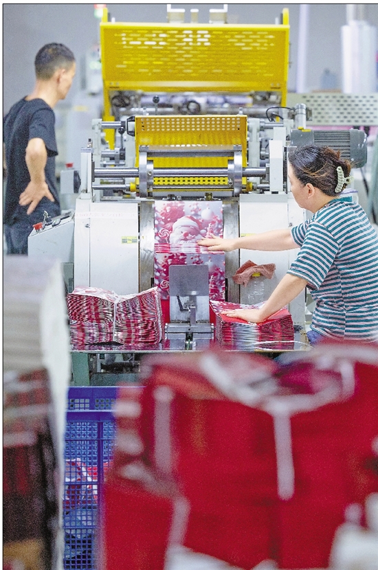 在自动化机器的高效运作下,圣诞礼品袋生产效率明显提升。