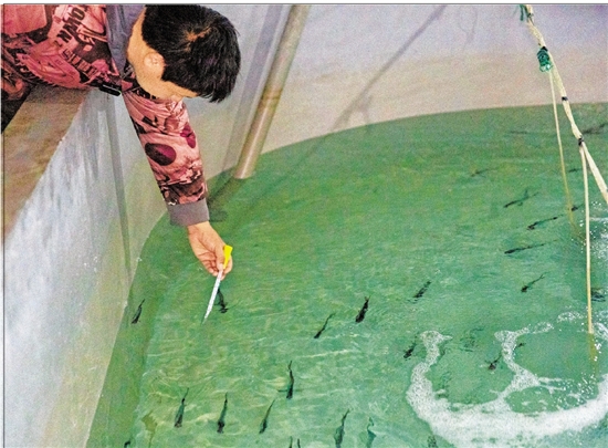 陶顺顺测量水温。 本报记者 贺元凯 摄