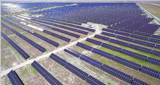 中企参与建设的哈萨克斯坦阿拉木图光伏电站助力绿色能源点亮千家万户。图为在阿拉木图州拍摄的卡普恰盖100兆瓦光伏电站的太阳能电池板。 新华社发(奥斯帕诺夫摄)