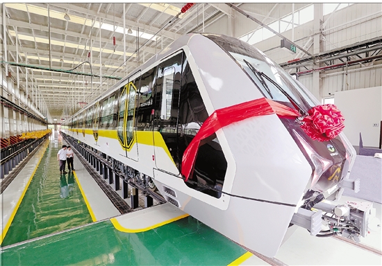 | 6月20日,杭德市域铁路工程首列车在杭州中车车辆有限公司正式下线。该列车是一款具有地方特色的城市轨道交通智能列车,最高运行时速120公里,最大载客量1728人,具有定制化、绿色、智能、舒适等特点。杭德市域铁路连接杭州市余杭区和湖州市德清县,预计2026年建成通车,与杭州地铁10号线贯通运营。 通讯员 谢尚国 摄 |