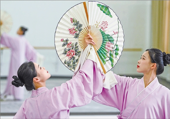 浙江音乐学院戏剧系越剧表演专业的双胞胎毕业生陈佳贤与陈佳慧正在练功房排练,毕业后她们将进入浙江小百花越剧院浙江越剧团。