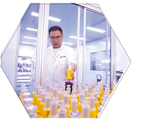 浙江东进新材料有限公司实验室内,实验人员正在操作自动配色系统。