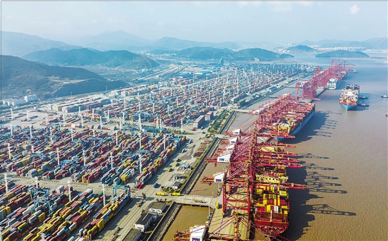 集装箱船靠泊宁波舟山港穿山港区。 汤健凯 摄