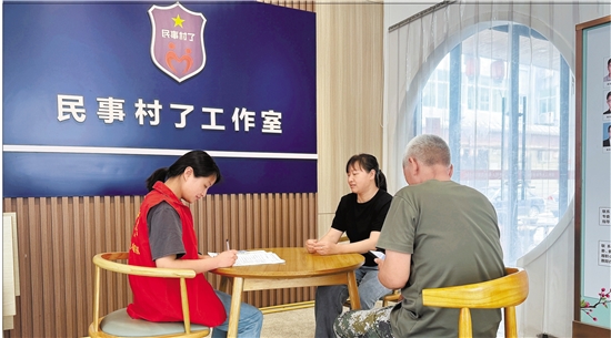 应村村务助理叶文巧(左)在调解村民矛盾。