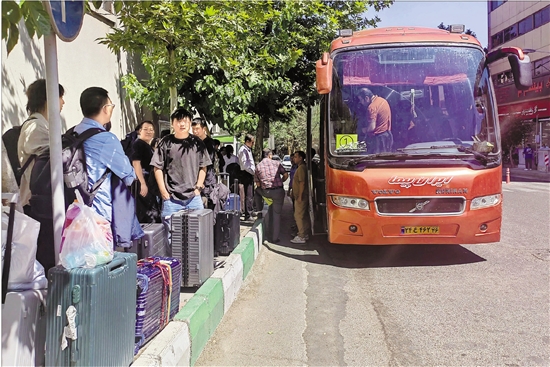 6月19日,在伊朗德黑兰的华侨华人准备乘车撤离德黑兰。 新华社记者 沙达提 摄
