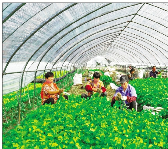 萧山区益农镇三围村村民采收芹菜,打包发往全国。