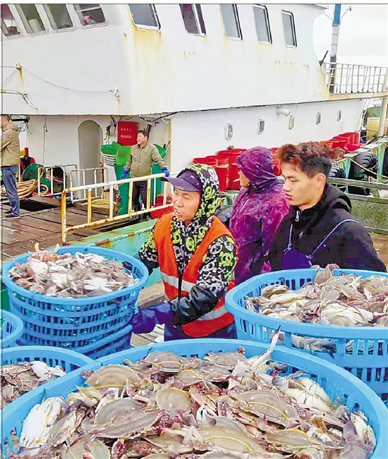 岱山蟹文化产业园码头,螃蟹装卸上岸(资料图)。