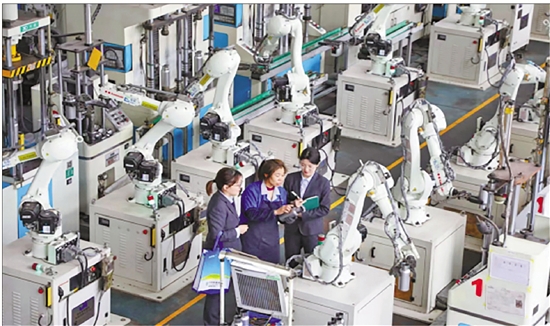 农行金华分行客户经理走进科技型企业,调研企业经营情况。