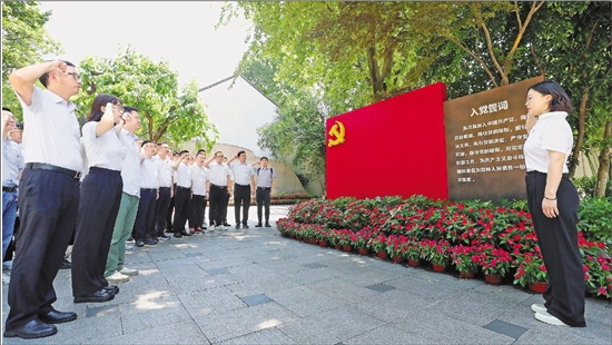 6月28日,杭州北山街中国共产党杭州历史馆迎来众多党员。大家通过参观展览、重温入党誓词等多种形式迎“七一”。 本报记者 林云龙 通讯员 张素卿 摄