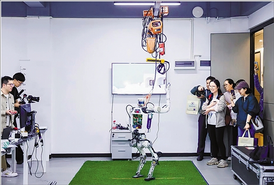 人们参观石虎山机器人创新基地企业研发的成果。 浙江大学供图