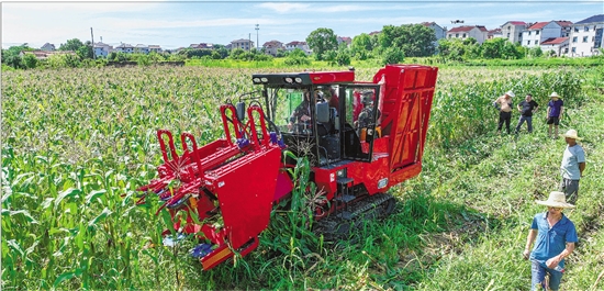 7月2日,我省首台2行自走式鲜食玉米收获机,在金华市婺城区下汪村的一片鲜食玉米地完成田间试验。该装备由浙江省农业机械研究院联合农业农村部南京农业机械化研究所及相关企业共同研制,目前已初步满足作业要求,预计综合作业效率是人工的50倍以上。 本报记者 金思成 通讯员 陈业 时宽兵 文/摄 |