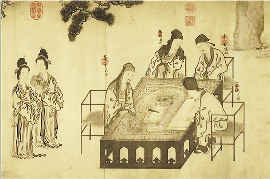 宋代画家李公麟描绘士大夫生活的《西园雅集图》(局部)。