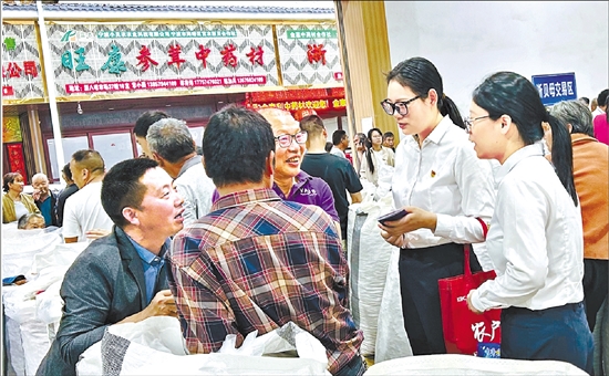 工行磐安支行客户经理走访浙八味药材城,主动了解药农、药商融资需求。