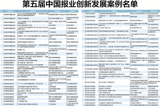 第五届中国报业创新发展案例名单