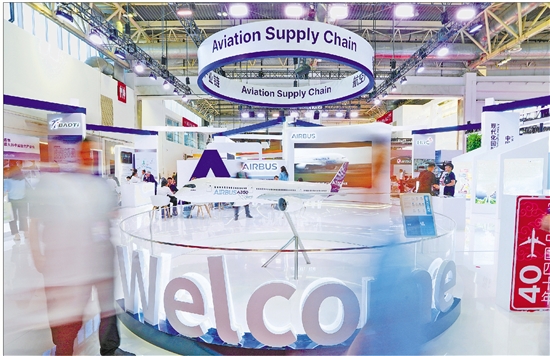 7月16日,参观者在链博会先进制造链展区航空产业链展位参观。